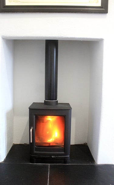 Heating: oil-fired central heating and a wood burning stove.